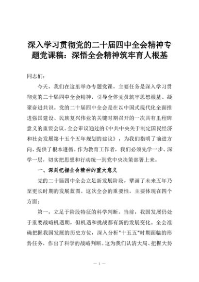 【七哥公文】2025年:深入学习贯彻党的二十届四中全会精神专题党课稿:深悟全会精神筑牢育人根基+更多免费公文+VX:QiGeGongWen2024