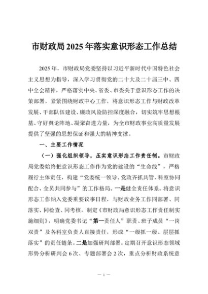 / 【七哥公文】2025年:市财政局2025年落实意识形态工作总结+更多免费公文+VX:QiGeGongWen2024