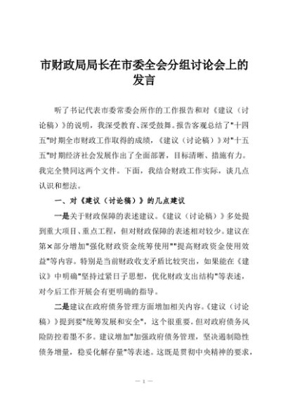 / 【七哥公文】2025年:市财政局局长在市委全会分组讨论会上的发言+更多免费公文+VX:QiGeGongWen2024