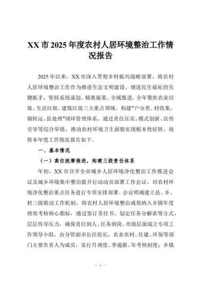 / 【七哥公文】2025年:XX市2025年度农村人居环境整治工作情况报告+更多免费公文+VX:QiGeGongWen2024