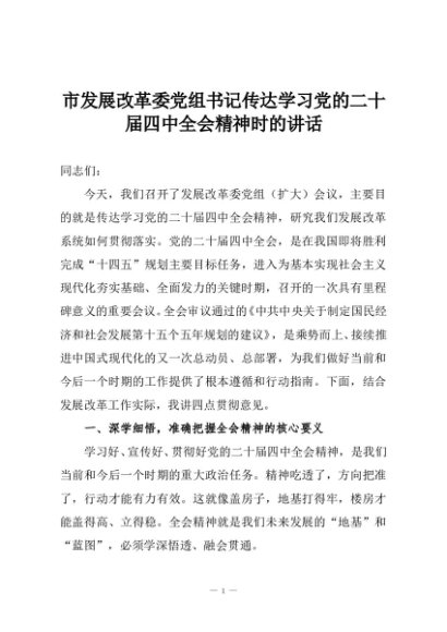 【七哥公文】2025年:市发展改革委党组书记传达学习党的二十届四中全会精神时的讲话+更多免费公文+VX:QiGeGongWen2024