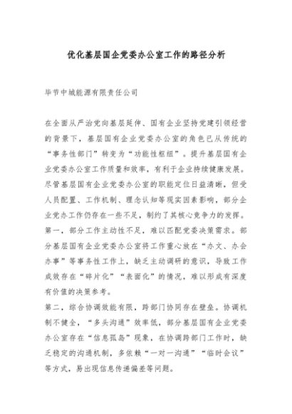 【七哥公文】2025年:优化基层国企党委办公室工作的路径分析_副本+更多免费公文+VX:QiGeGongWen2024