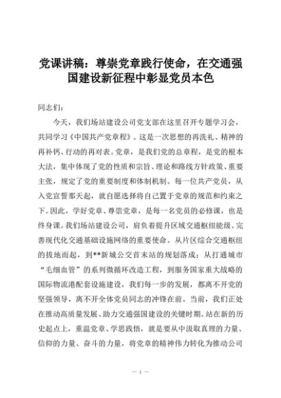 【七哥公文】2025年:党课讲稿:尊崇党章践行使命,在交通强国建设新征程中彰显党员本色+更多免费公文+VX:QiGeGongWen2024