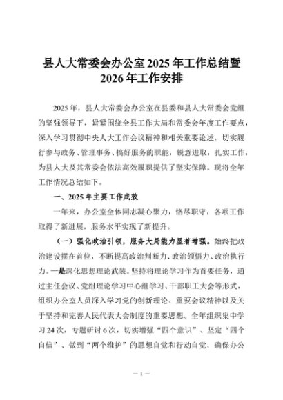 【七哥公文】2025年:县人大常委会办公室2025年工作总结暨2026年工作安排+更多免费公文+VX:QiGeGongWen2024