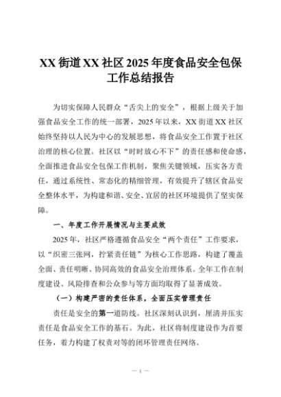 【七哥公文】2025年:XX街道XX社区2025年度食品安全包保工作总结报告+更多免费公文+VX:QiGeGongWen2024