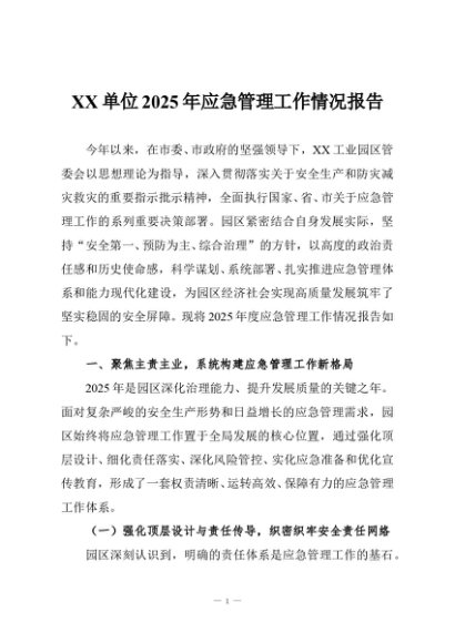/ 【七哥公文】2025年:XX单位2025年应急管理工作情况报告+更多免费公文+VX:QiGeGongWen2024