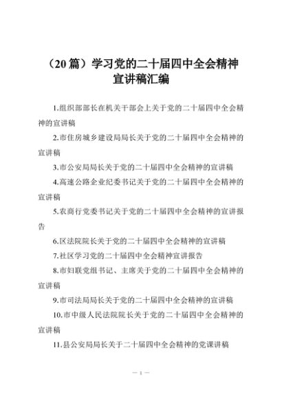 / 【七哥公文】2025年:(20篇)学习党的二十届四中全会精神宣讲稿汇编+更多免费公文+VX:QiGeGongWen2024