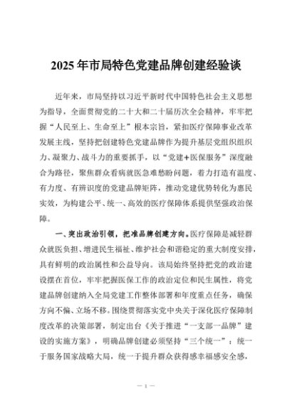 / 【七哥公文】2025年:2025年市局特色党建品牌创建经验谈+更多免费公文+VX:QiGeGongWen2024