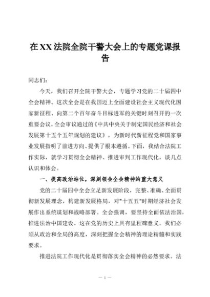 / 【七哥公文】2025年:在XX法院全院干警大会上的专题党课报告+更多免费公文+VX:QiGeGongWen2024