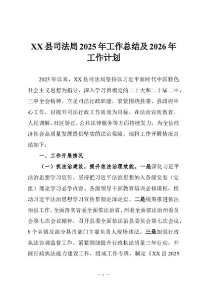 / 【七哥公文】2025年:XX县司法局2025年工作总结及2026年工作计划+更多免费公文+VX:QiGeGongWen2024
