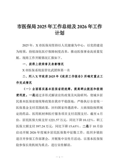 / 【七哥公文】2025年:市医保局2025年工作总结及2026年工作计划+更多免费公文+VX:QiGeGongWen2024