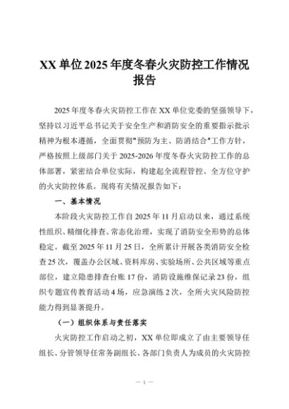 / 【七哥公文】2025年:XX单位2025年度冬春火灾防控工作情况报告+更多免费公文+VX:QiGeGongWen2024