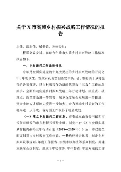 【七哥公文】2025年:关于X市实施乡村振兴战略工作情况的报告+更多免费公文+VX:QiGeGongWen2024
