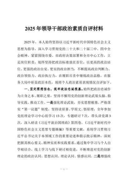 【七哥公文】2025年:2025年领导干部政治素质自评材料+更多免费公文+VX:QiGeGongWen2024