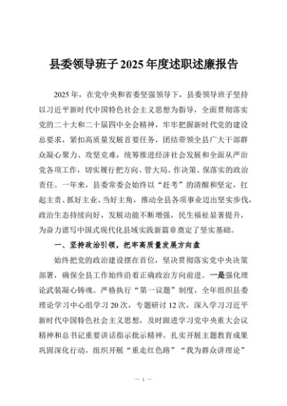 / 【七哥公文】2025年:县委领导班子2025年度述职述廉报告+更多免费公文+VX:QiGeGongWen2024