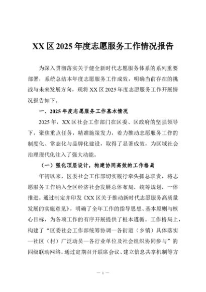 / 【七哥公文】2025年:XX区2025年度志愿服务工作情况报告+更多免费公文+VX:QiGeGongWen2024