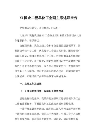 / 【七哥公文】2025年:XX国企二级单位工会副主席述职报告_副本+更多免费公文+VX:QiGeGongWen2024