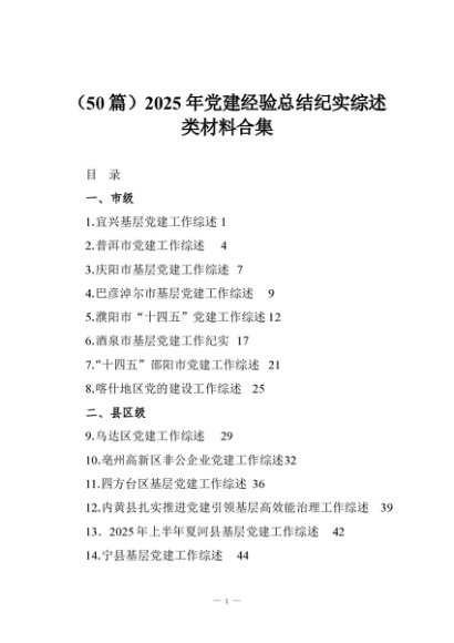 【七哥公文】2025年:(50篇)2025年党建经验总结纪实综述类材料合集+更多免费公文+VX:QiGeGongWen2024