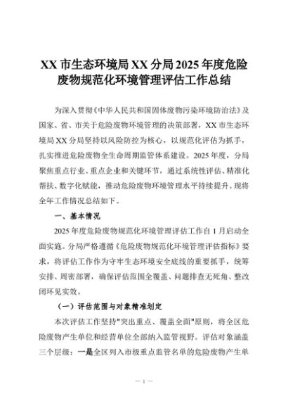 【七哥公文】2025年:XX市生态环境局XX分局2025年度危险废物规范化环境管理评估工作总结+更多免费公文+VX:QiGeGongWen2024