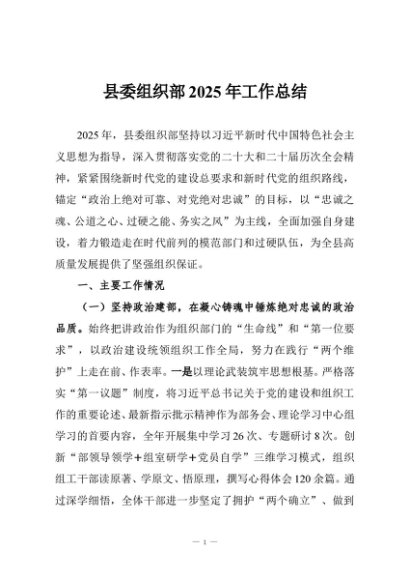 / 【七哥公文】2025年:县委组织部2025年工作总结+更多免费公文+VX:QiGeGongWen2024