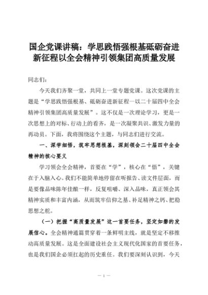 【七哥公文】2025年:国企党课讲稿:学思践悟强根基砥砺奋进新征程以全会精神引领集团高质量发展+更多免费公文+VX:QiGeGongWen2024