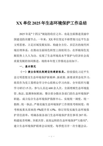 / 【七哥公文】2025年:XX单位2025年生态环境保护工作总结+更多免费公文+VX:QiGeGongWen2024