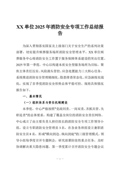/ 【七哥公文】2025年:XX单位2025年消防安全专项工作总结报告+更多免费公文+VX:QiGeGongWen2024