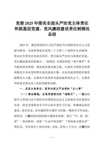 【七哥公文】2025年:党委2025年落实全面从严治党主体责任和抓基层党建、党风廉政建设责任制情况总结+更多免费公文+VX:QiGeGongWen2024