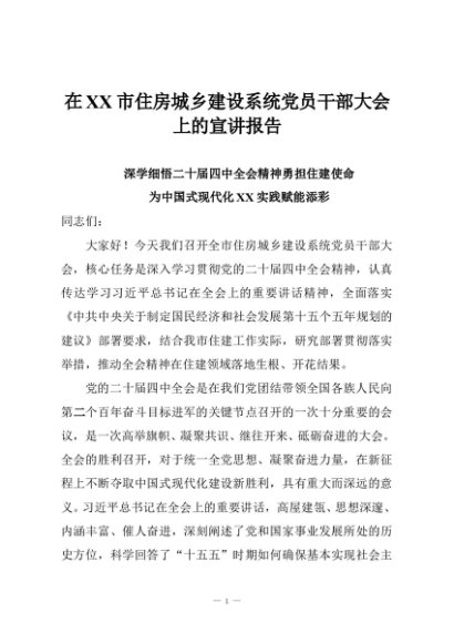 / 【七哥公文】2025年:在XX市住房城乡建设系统党员干部大会上的宣讲报告+更多免费公文+VX:QiGeGongWen2024