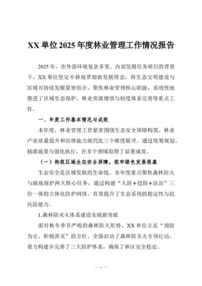 / 【七哥公文】2025年:XX单位2025年度林业管理工作情况报告+更多免费公文+VX:QiGeGongWen2024