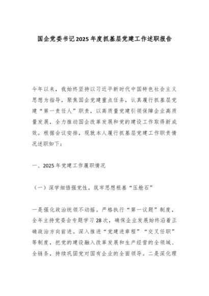 【七哥公文】2025年:国企党委书记2025年度抓基层党建工作述职报告_副本+更多免费公文+VX:QiGeGongWen2024