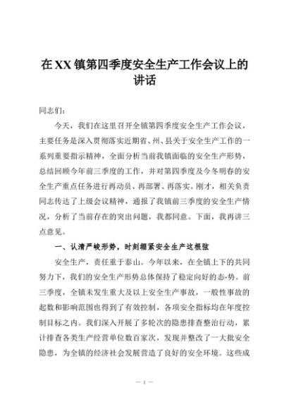 / 【七哥公文】2025年:在XX镇第四季度安全生产工作会议上的讲话+更多免费公文+VX:QiGeGongWen2024