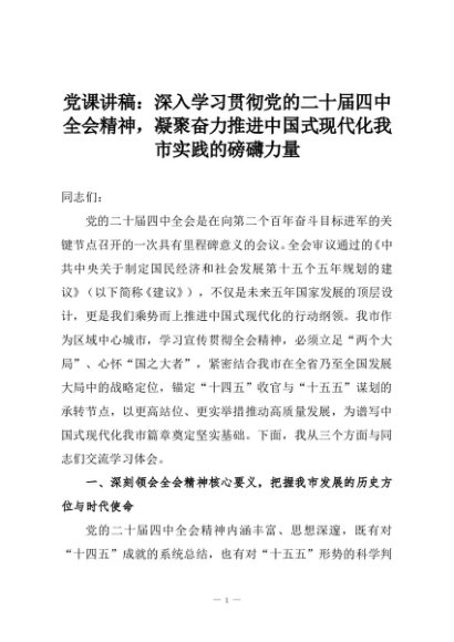 【七哥公文】2025年:党课讲稿:深入学习贯彻党的二十届四中全会精神,凝聚奋力推进中国式现代化我市实践的磅礴力量+更多免费公文+VX:QiGeGongWen2024