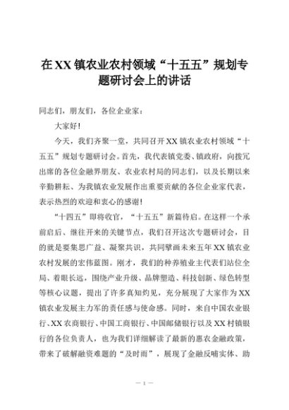 【七哥公文】2025年:在XX镇农业农村领域“十五五”规划专题研讨会上的讲话+更多免费公文+VX:QiGeGongWen2024