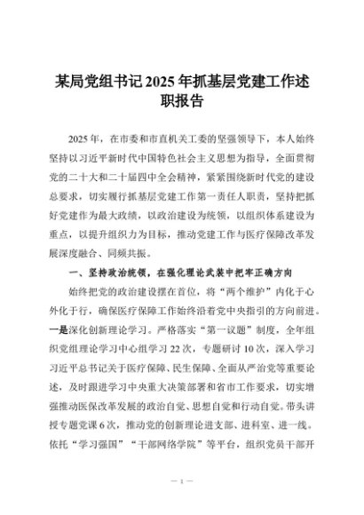 / 【七哥公文】2025年:某局党组书记2025年抓基层党建工作述职报告+更多免费公文+VX:QiGeGongWen2024