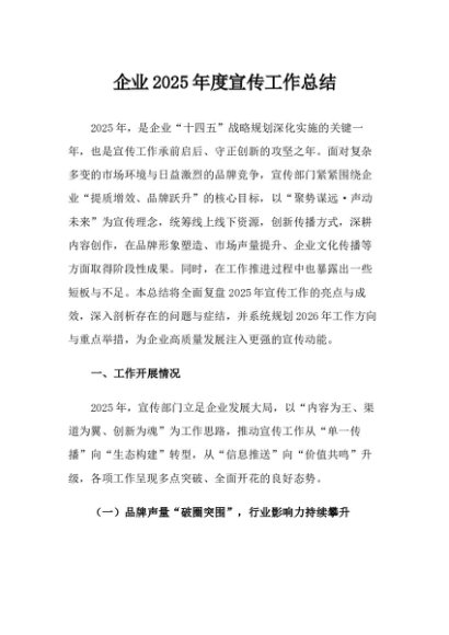 / 【七哥公文】2025年:企业2025年度宣传工作总结_副本+更多免费公文+VX:QiGeGongWen2024