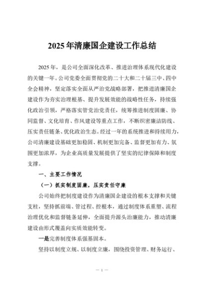 / 【七哥公文】2025年:2025年清廉国企建设工作总结+更多免费公文+VX:QiGeGongWen2024