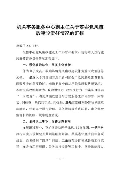 【七哥公文】2025年:机关事务服务中心副主任关于落实党风廉政建设责任情况的汇报+更多免费公文+VX:QiGeGongWen2024