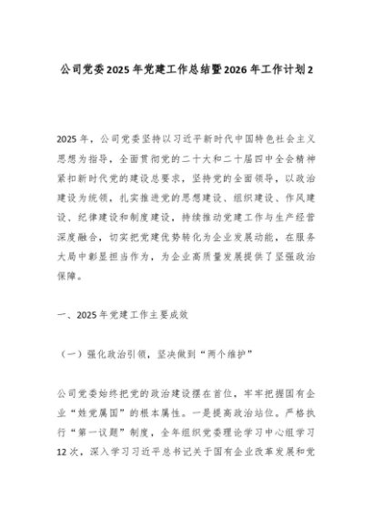 【七哥公文】2025年:公司党委2025年党建工作总结暨2026年工作计划2_副本+更多免费公文+VX:QiGeGongWen2024