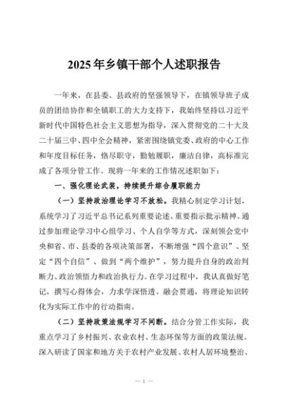 / 【七哥公文】2025年:2025年乡镇干部个人述职报告+更多免费公文+VX:QiGeGongWen2024