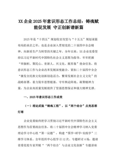 【七哥公文】2025年:XX企业2025年意识形态工作总结:铸魂赋能促发展 守正创新谱新篇_副本+更多免费公文+VX:QiGeGongWen2024
