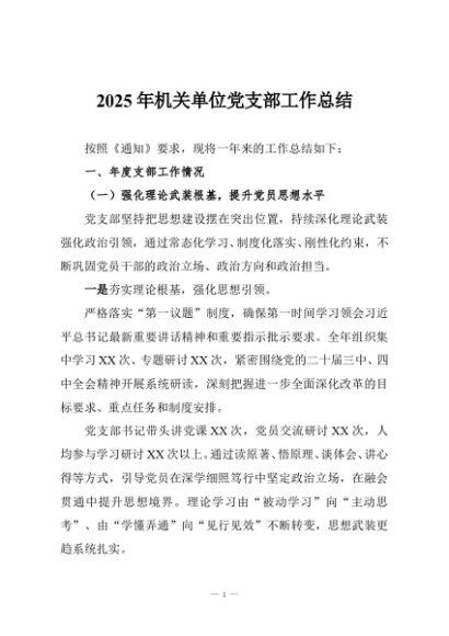 / 【七哥公文】2025年:2025年机关单位党支部工作总结+更多免费公文+VX:QiGeGongWen2024