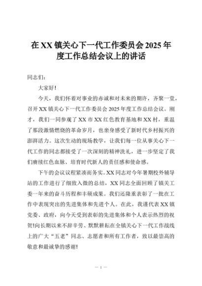 【七哥公文】2025年:在XX镇关心下一代工作委员会2025年度工作总结会议上的讲话+更多免费公文+VX:QiGeGongWen2024