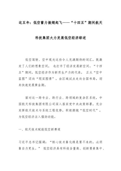 【七哥公文】2025年:这五年:低空蓄力振翅起飞——“十四五”期间航天科技集团大力发展低空经济综述_副本+更多免费公文+VX:QiGeGongWen2024