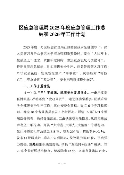【七哥公文】2025年:区应急管理局2025年度应急管理工作总结和2026年工作计划+更多免费公文+VX:QiGeGongWen2024