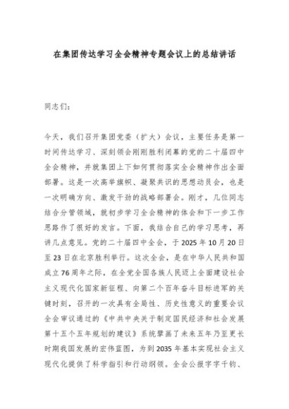 【七哥公文】2025年:在集团传达学习全会精神专题会议上的总结讲话_副本+更多免费公文+VX:QiGeGongWen2024