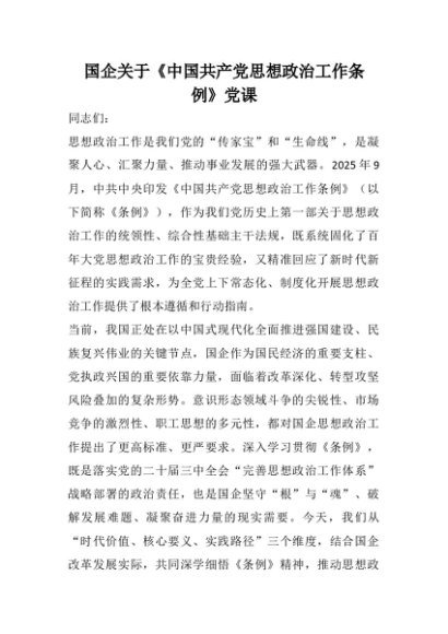 / 【七哥公文】2025年:国企关于《中国共产党思想政治工作条例》党课+更多免费公文+VX:QiGeGongWen2024
