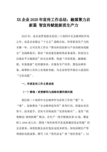 【七哥公文】2025年:XX企业2025年宣传工作总结:融媒聚力启新篇 智宣传赋能新质生产力_副本+更多免费公文+VX:QiGeGongWen2024
