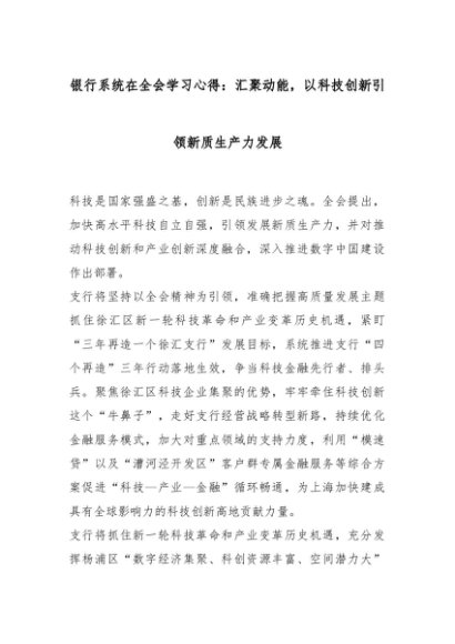 【七哥公文】2025年:银行系统在全会学习心得:汇聚动能,以科技创新引领新质生产力发展_副本+更多免费公文+VX:QiGeGongWen2024