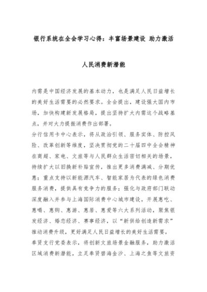 【七哥公文】2025年:银行系统在全会学习心得:丰富场景建设 助力激活人民消费新潜能_副本+更多免费公文+VX:QiGeGongWen2024
